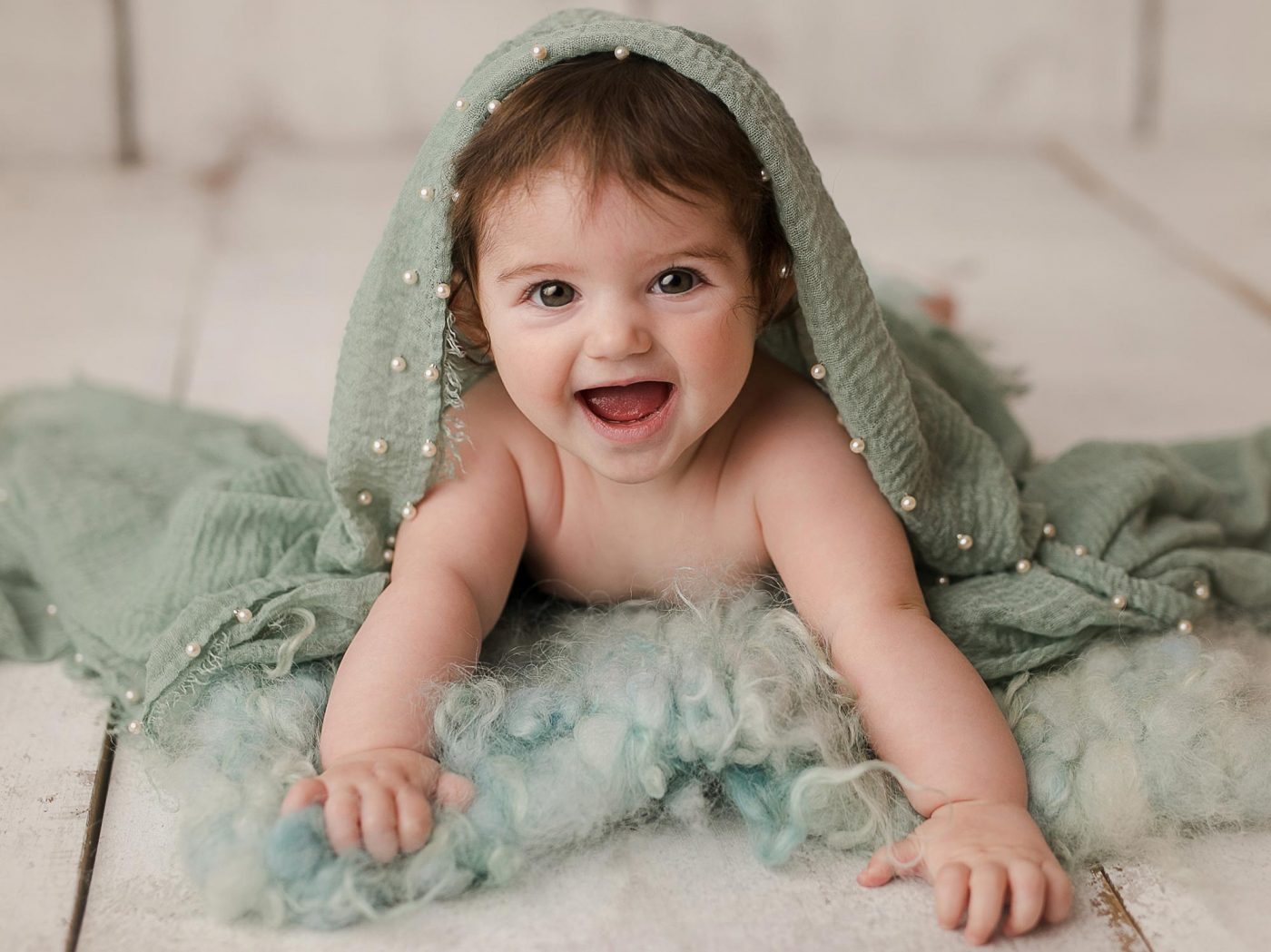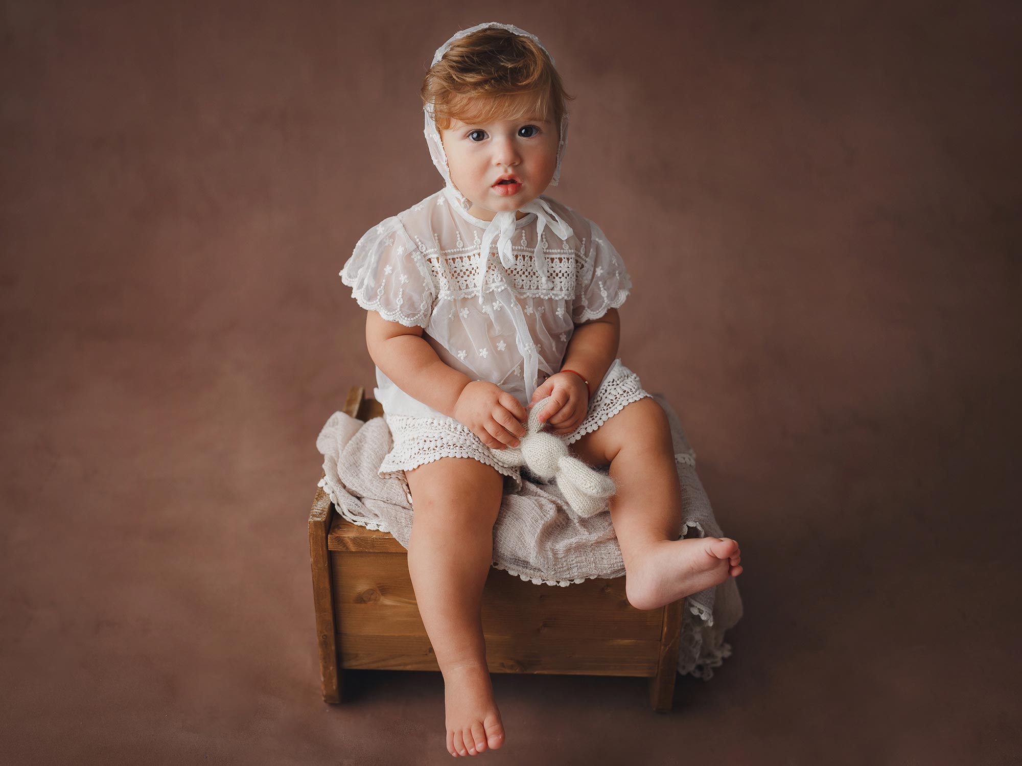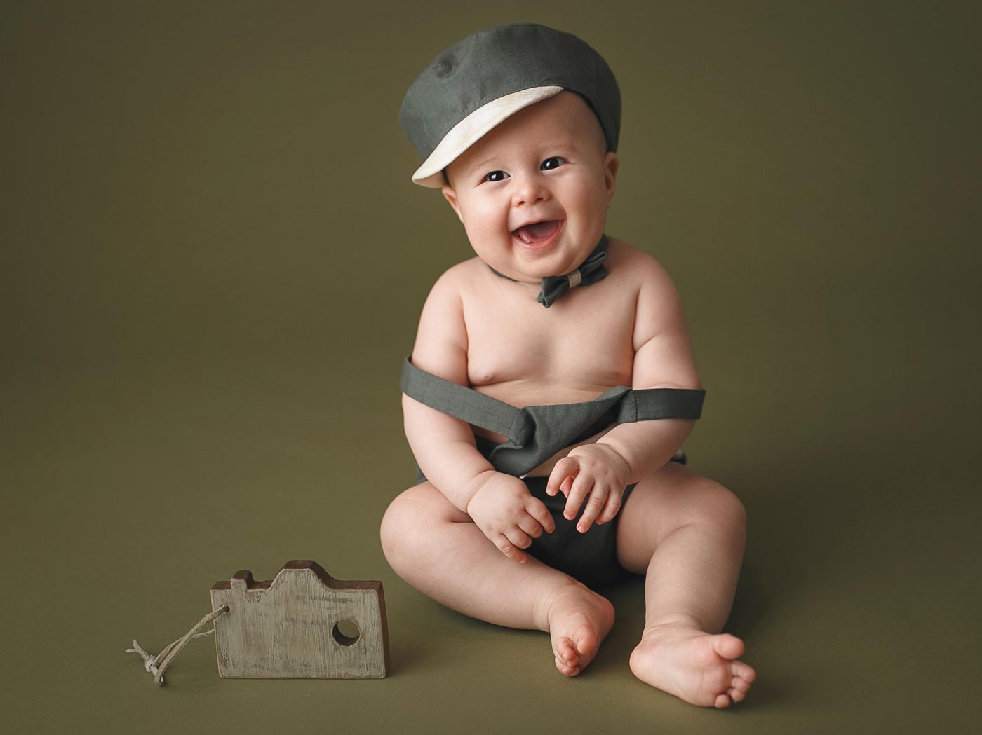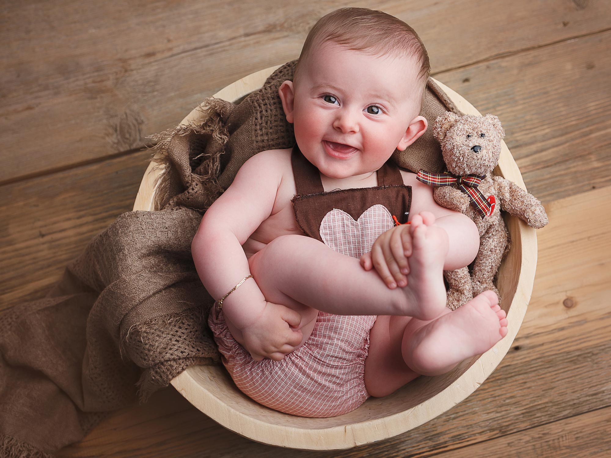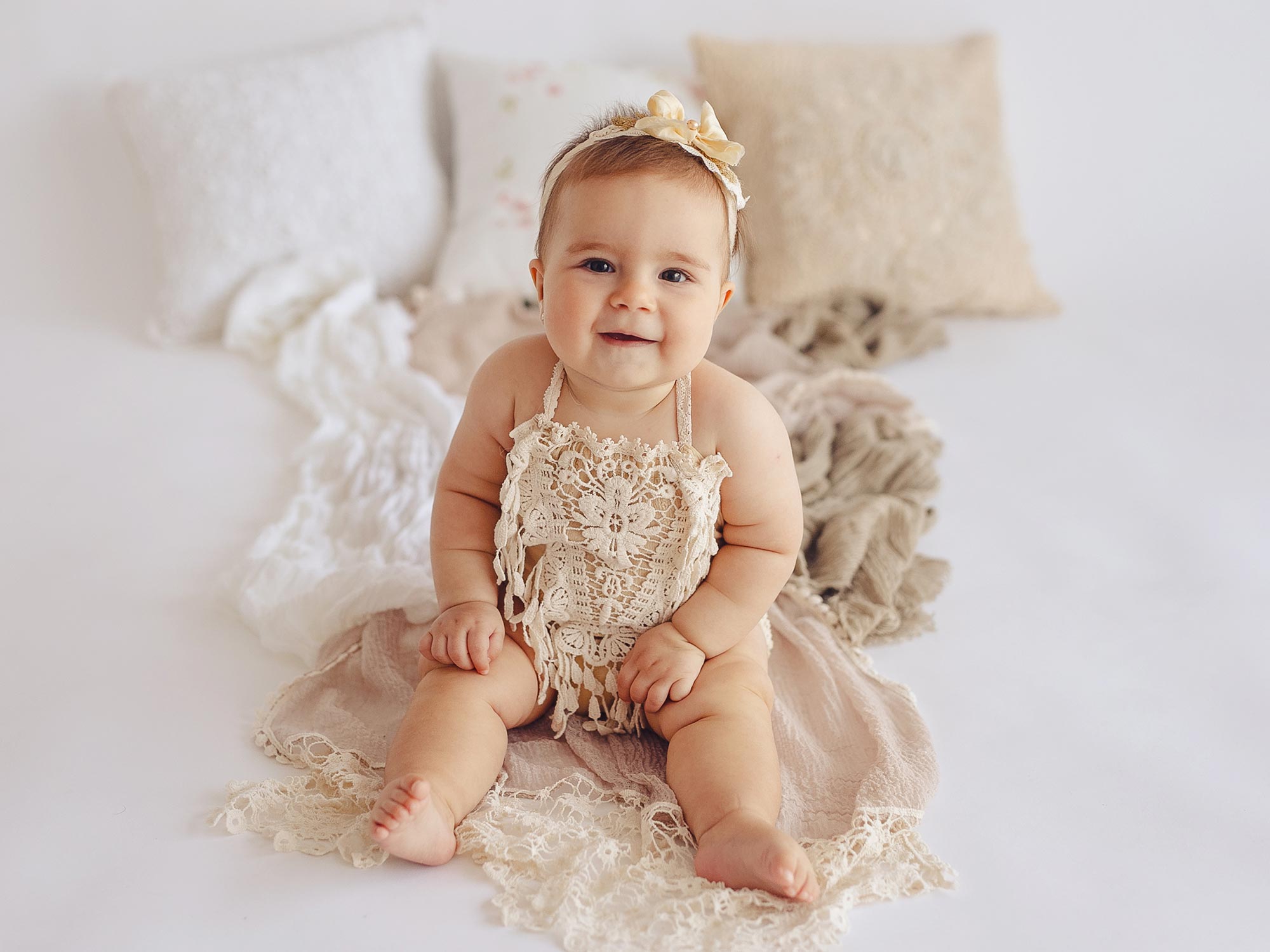 Chicotelile si gangurelile rasuna in studio si putem obtine cele mai vesele cadre. Dupa 6-7 luni, bebelusii pot fi fotografiati in mai multe pozitii si decoruri diferite. Astfel, putem incerca 3-4 cadre diferite, plus fotografii cu parintii.