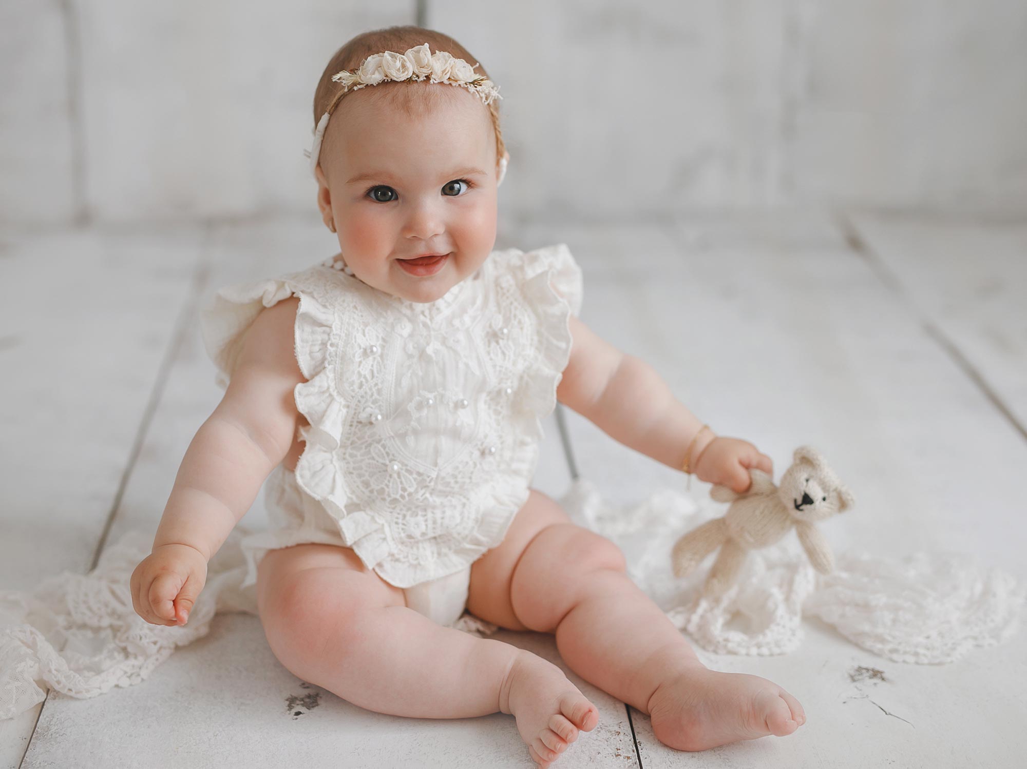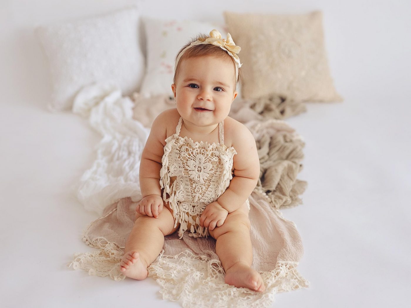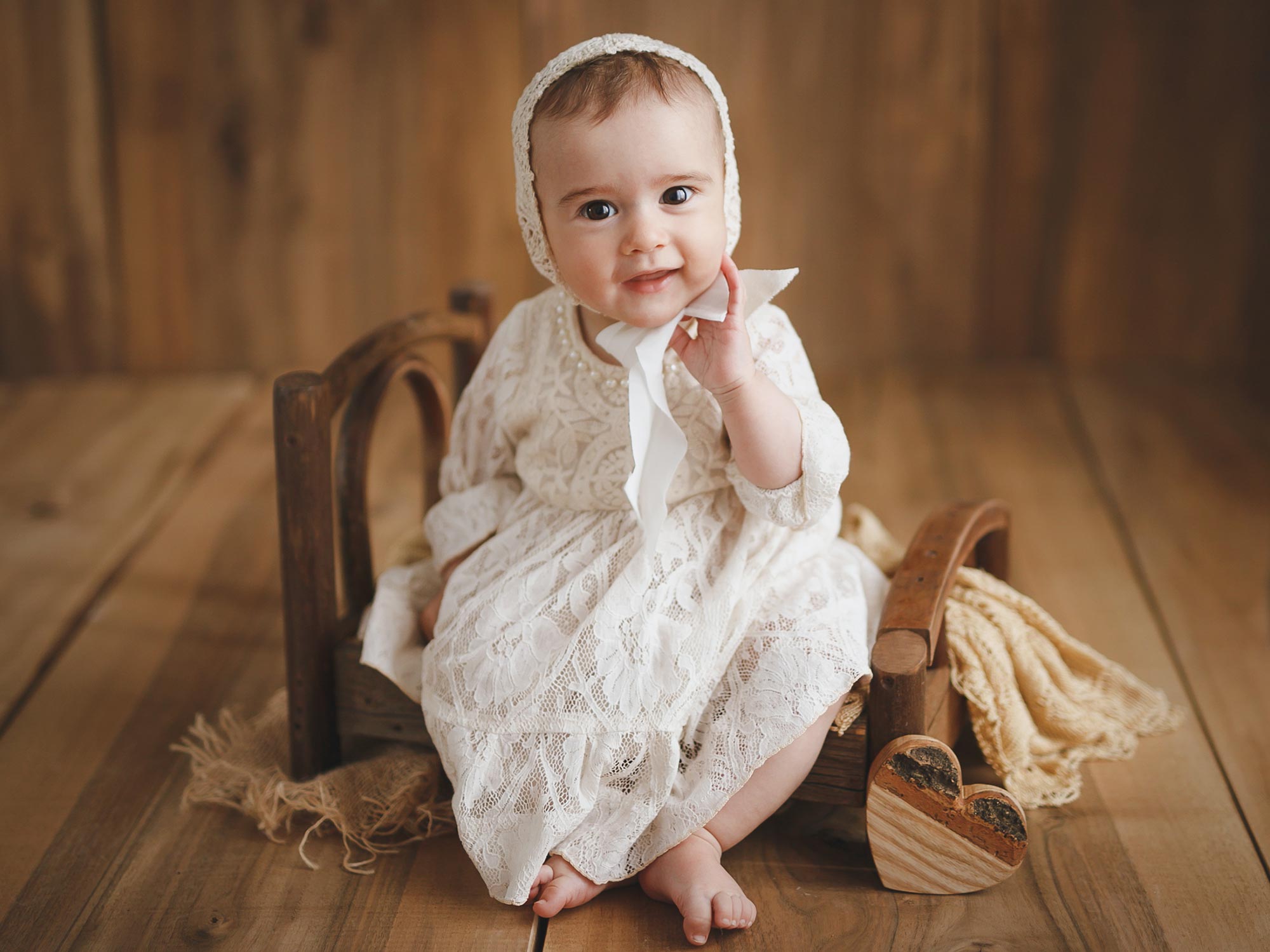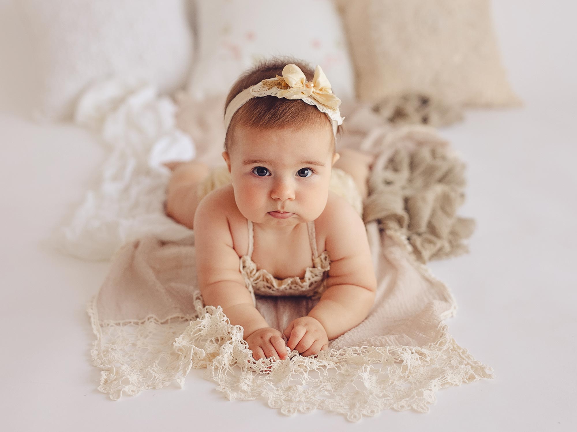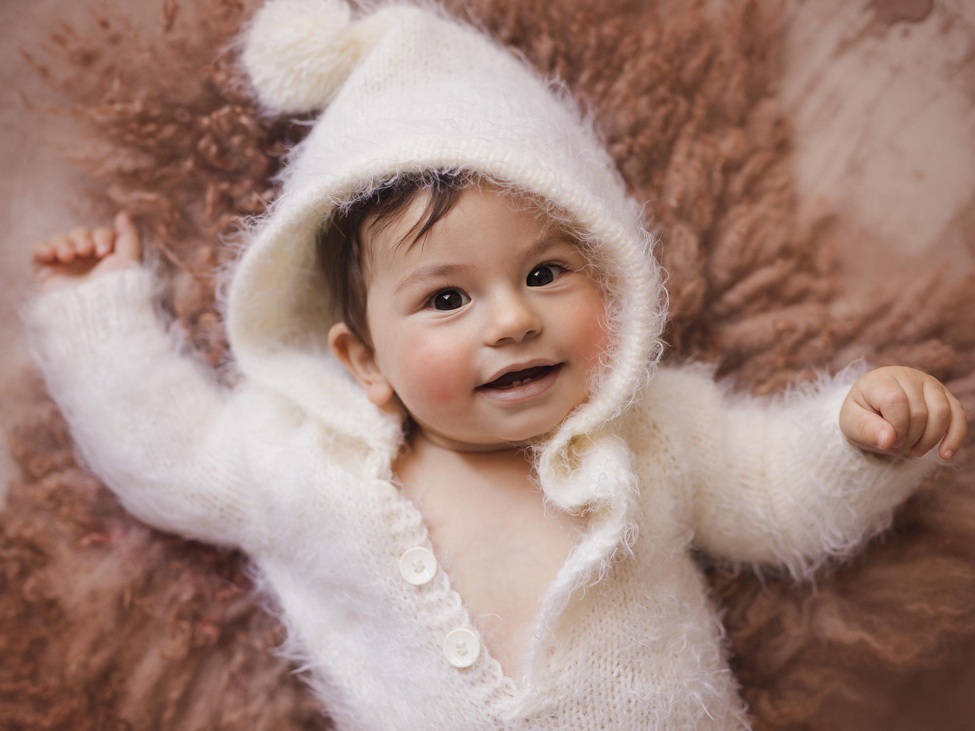 Chicotelile si gangurelile rasuna in studio si putem obtine cele mai vesele cadre. Dupa 6-7 luni, bebelusii pot fi fotografiati in mai multe pozitii si decoruri diferite. Astfel, putem incerca 3-4 cadre diferite, plus fotografii cu parintii.