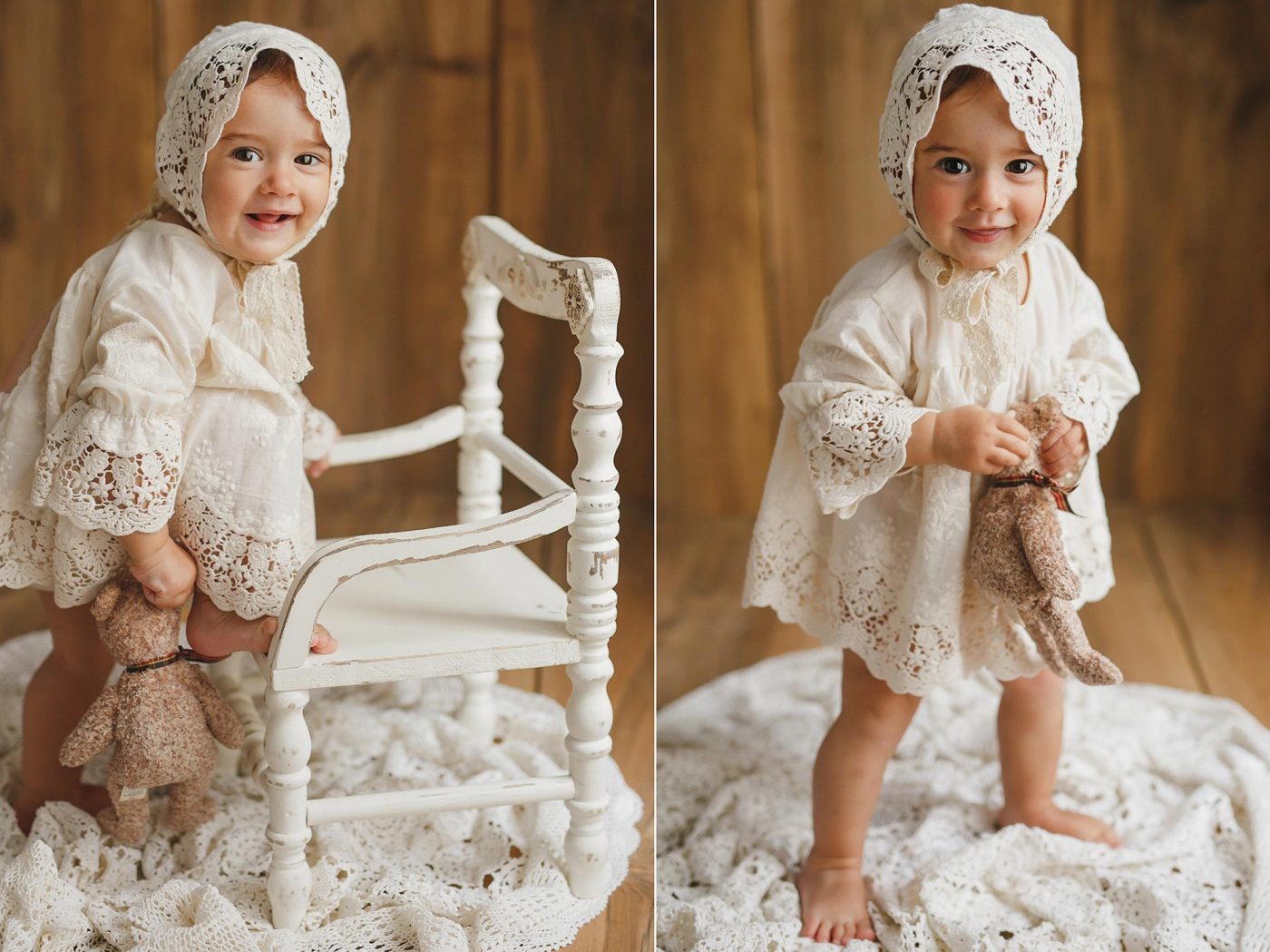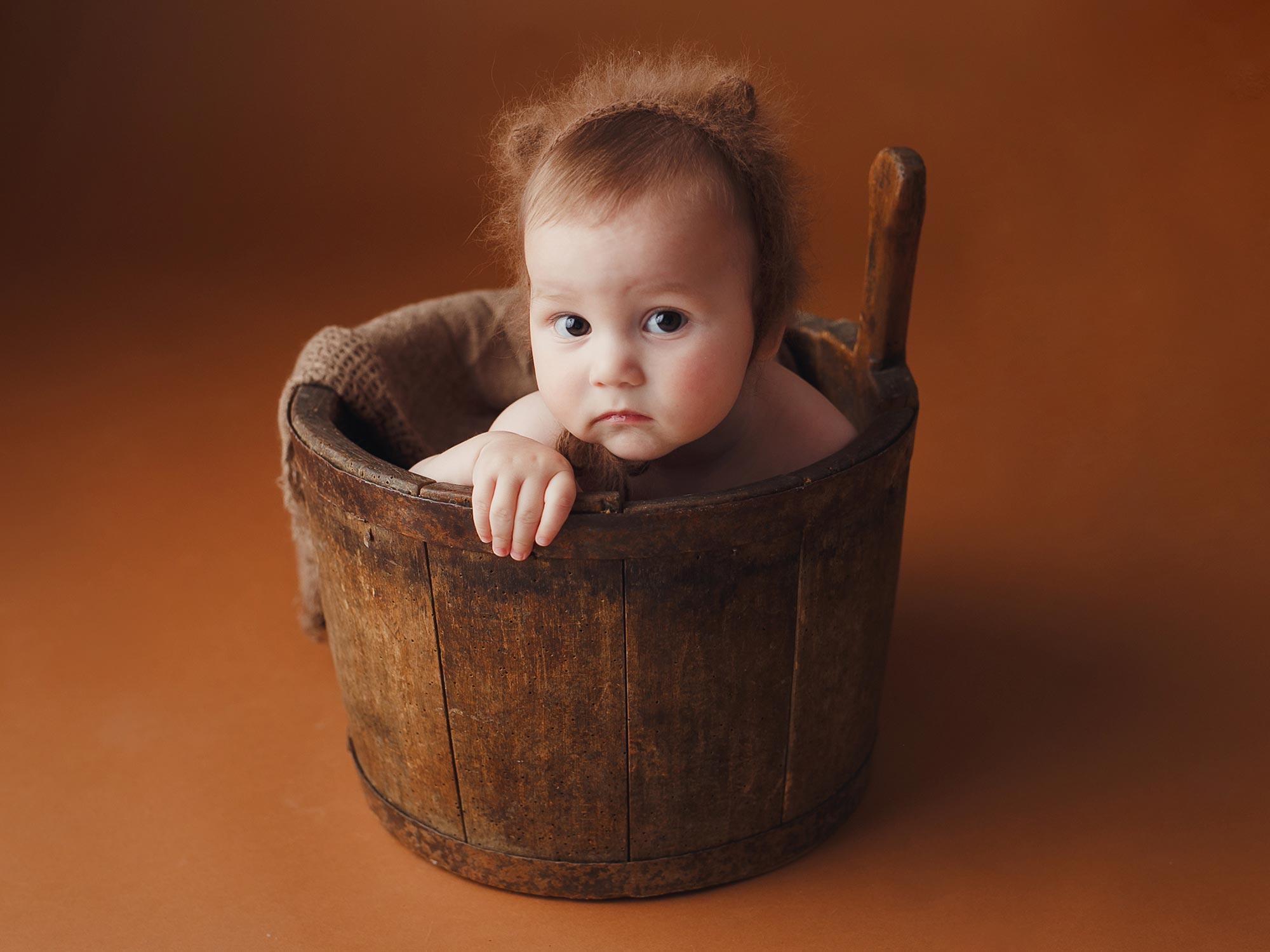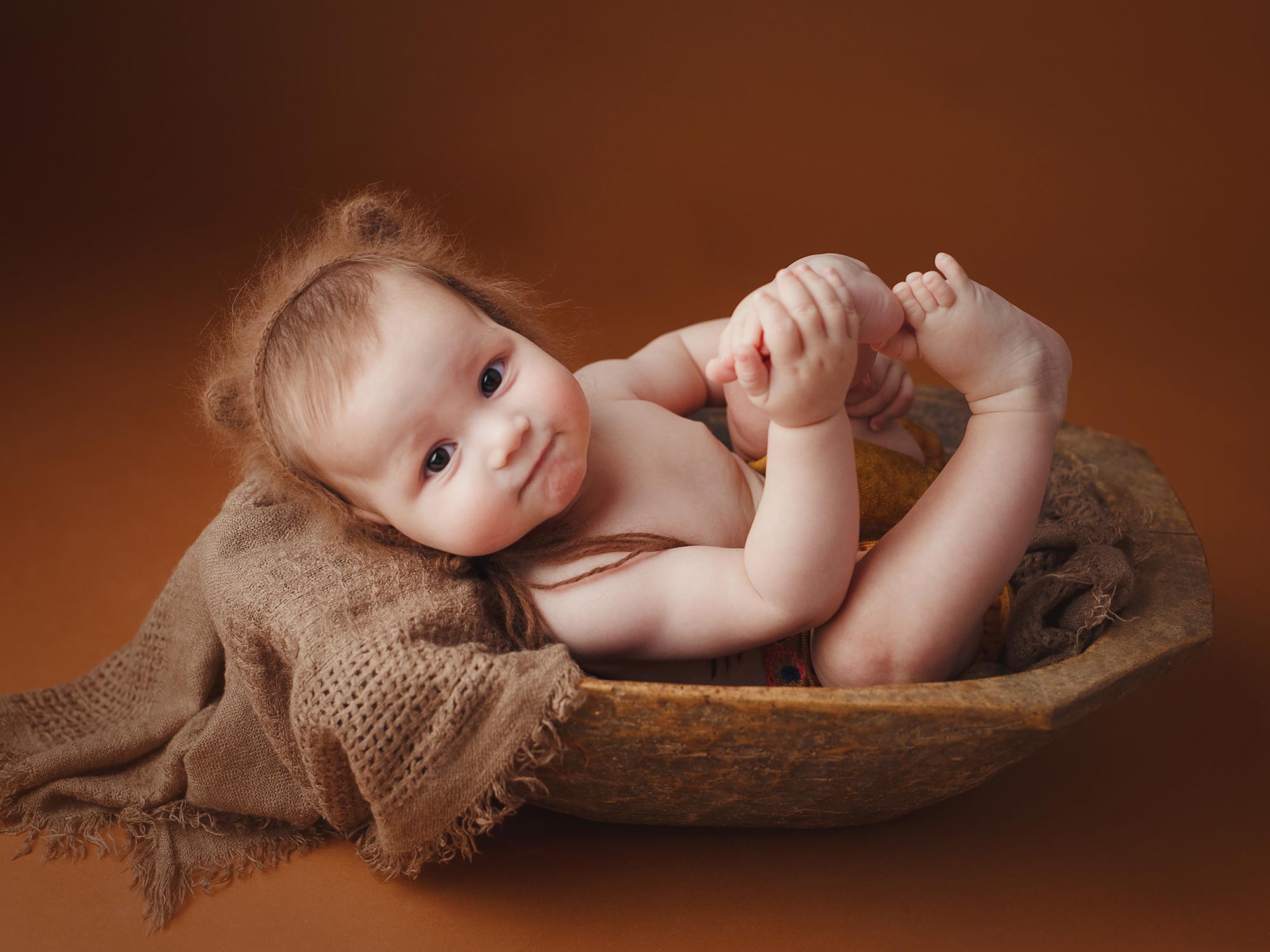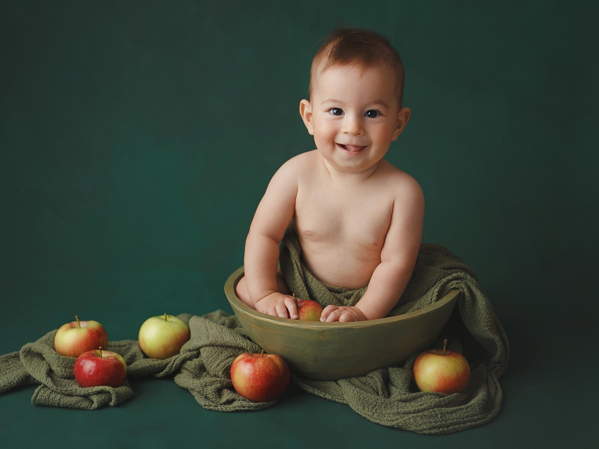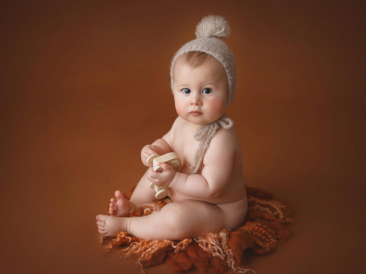Chicotelile si gangurelile rasuna in studio si putem obtine cele mai vesele cadre. Dupa 6-7 luni, bebelusii pot fi fotografiati in mai multe pozitii si decoruri diferite. Astfel, putem incerca 3-4 cadre diferite, plus fotografii cu parintii.